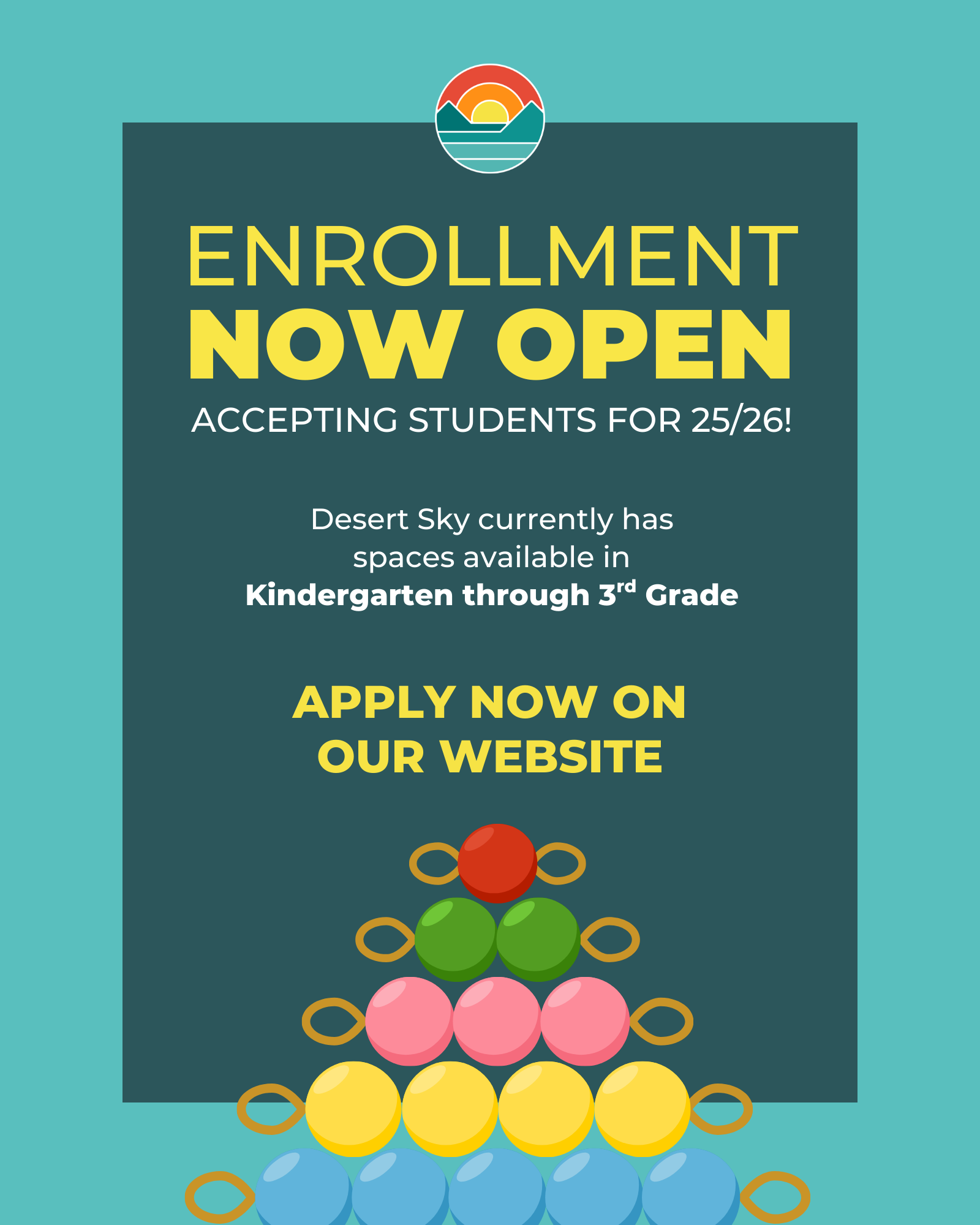 Desert Sky currently has limited openings in Kindergarten through 3rd Grade. Enroll now without going through the lottery!